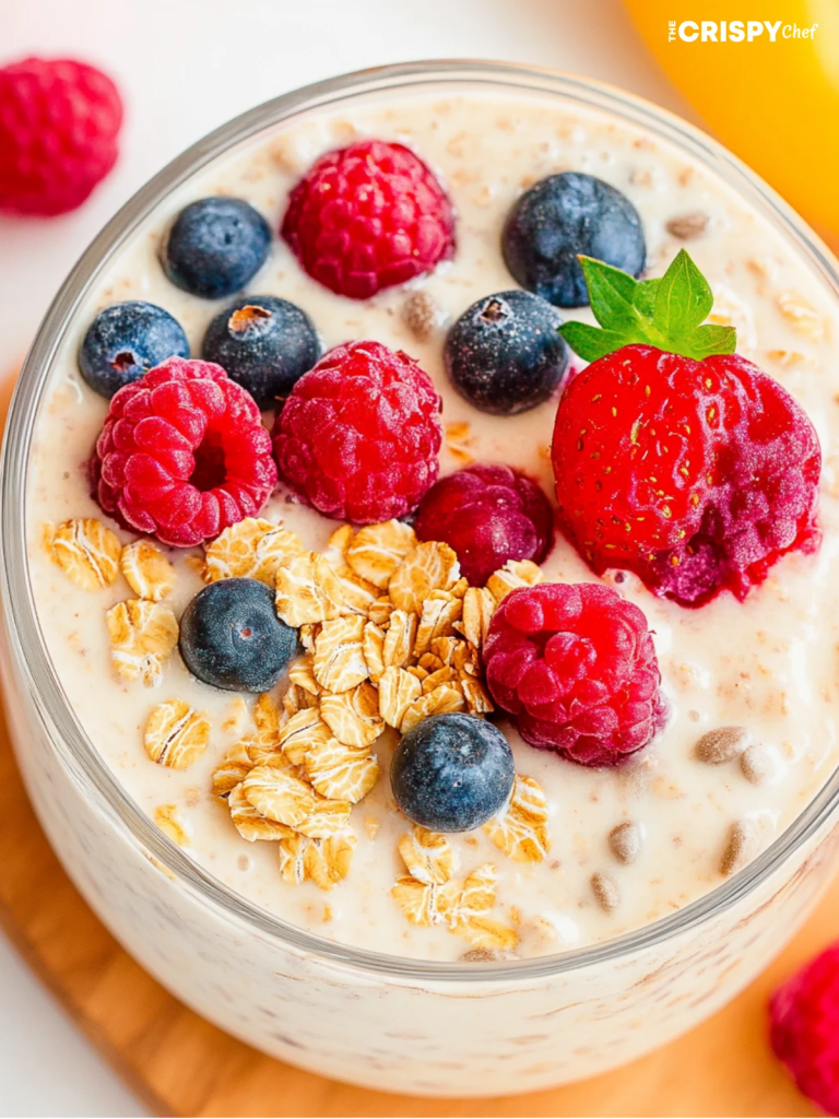 Protein Overnight Oats can absolutely be dessert. Load them with protein powder, cocoa, nut butter, and maybe chocolate chips, and you get something thick and pudding-like that happens to be in a jar.