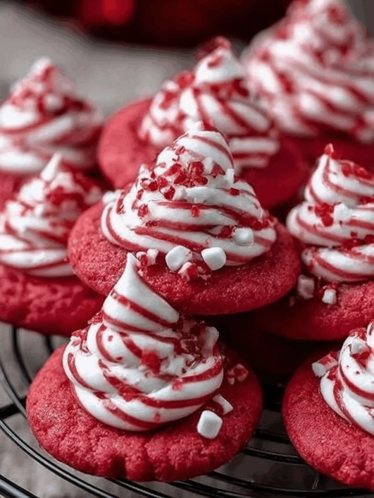 Red and white striped cookies that capture the essence of the season. These beauties are not only delicious but absolutely stunning on a holiday platter. They’re sturdy enough to mail to distant family and friends, making them ideal for advance preparation.