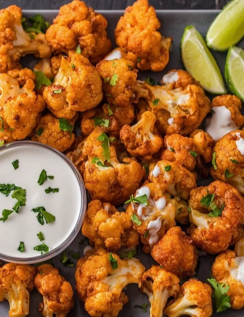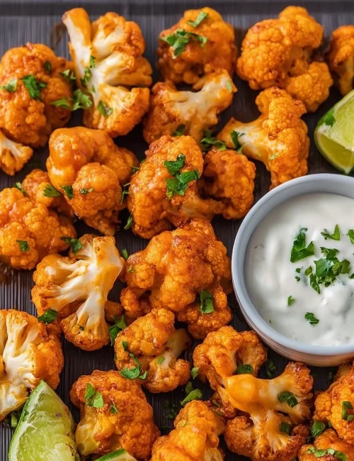 - Serve: Serve the buffalo cauliflower immediately with your favorite dipping sauce, such as ranch or blue cheese, and some celery sticks on the side.