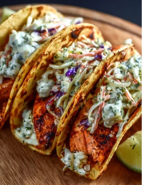 Air Fryer Salmon Tacos with Slaw are a delightful and easy meal that brings a burst of flavor to your table. The salmon is perfectly cooked with a crispy exterior, while the creamy slaw adds a fresh crunch. These tacos are not only quick to make but also a hit with both kids and adults, making them a fantastic family dinner option.