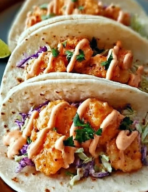 Making these tacos is simple! Start by marinating the shrimp to keep them tender. Then, coat them in a seasoned flour mix and fry until golden and crispy. Finish by assembling the tacos with fresh toppings and a drizzle of sauce. It’s an easy, hands-on recipe that’s sure to impress.