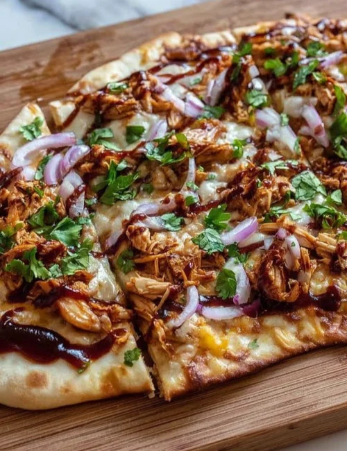 For the best experience, serve BBQ Chicken Flatbread immediately while it’s warm and cheesy. It pairs beautifully with a fresh garden salad or some crunchy vegetable sticks. You might also want to provide extra BBQ sauce on the side for those who enjoy a bit more flavor.