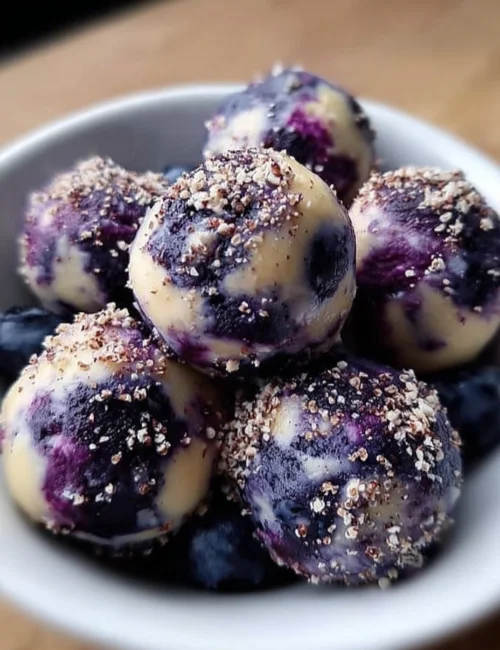 These Blueberry Cheesecake Protein Bites are a delightful and healthy snack. They bring together the creamy goodness of cheesecake with the juicy burst of fresh blueberries. Perfect for busy days, they make a great treat your family will enjoy any time of day—from after-school snacks to post-workout boosts.