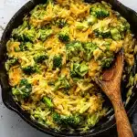 This recipe is the ultimate weeknight winner. Everything—from sautéing the aromatics to cooking the pasta and melting the cheese—happens in a single skillet. The orzo releases its starch right into the broth, resulting in a naturally velvety sauce that perfectly coats the tender broccoli and cheese. It’s an easy, comforting, and hearty meal that the whole family will love.