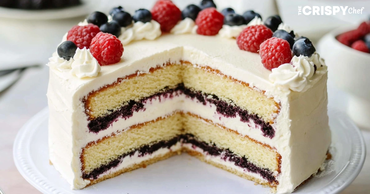 Chantilly cake is a light dessert. It has soft vanilla cake layers, creamy whipped cream, and tart berry jam. It’s perfect for summer with fresh berries.