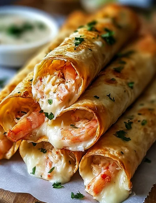 Cheesy crab and shrimp taquitos are a delightful treat for the whole family. They’re crispy on the outside and filled with a rich, creamy mixture of seafood and cheese. Perfect for a cozy family dinner or a fun snack, these taquitos are easy to make and can be served with your favorite dipping sauces.