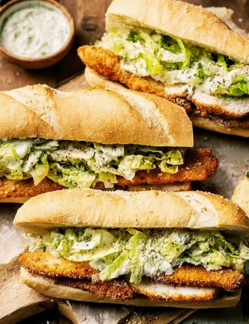 Making these sandwiches is straightforward and fun. You’ll start by seasoning and cooking the chicken until it’s crispy. While that’s happening, prepare the Caesar salad with fresh greens and creamy dressing. Finally, layer everything together in soft bread for a lovely meal.