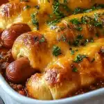 Making this dish is a breeze! Start by preheating your oven and prepping your ingredients. You’ll quickly assemble the hot dogs, chili, and cheese inside the golden crescent roll dough. A short bake in the oven will give you that perfect golden finish.