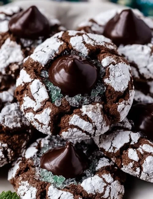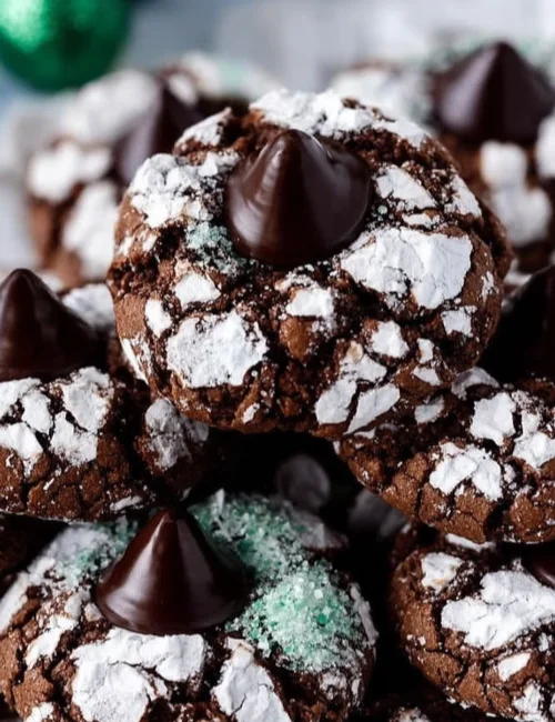 These Chocolate Mint Kiss Crinkle Cookies are a delightful blend of chocolate crinkles and creamy peppermint kisses, perfect for holiday gatherings or cozy family evenings.