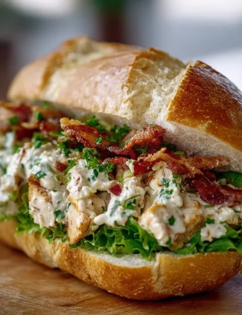 Making this sandwich is straightforward and fun. You’ll start by mixing the chicken, bacon, and ranch dressing in a bowl. Then, it’s all about assembling the sandwich with fresh ingredients. It takes very little time, ensuring you’ll have a delicious meal on the table in no time.