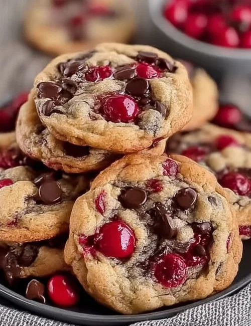 A delightful twist on classic cookies, featuring rich chocolate chips and sweet maraschino cherries, perfect for any occasion.
