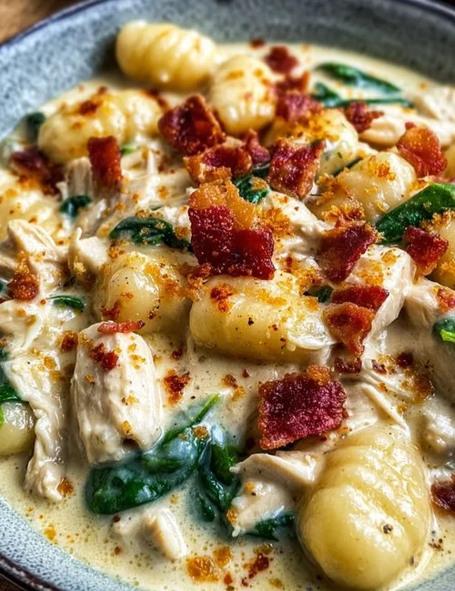 Making this dish is straightforward. Start by cooking the chicken, then add in the cream cheese and broth to create that luscious sauce. Toss in the gnocchi and spinach, let everything simmer, and finish with melted cheddar. It really is that simple!
