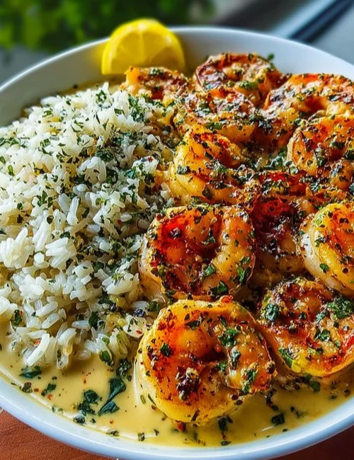 Creamy Herb Rice with Garlic Butter Shrimp Bowl