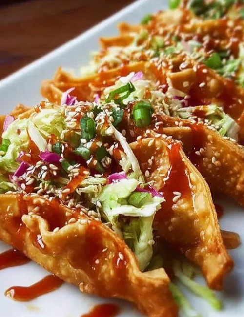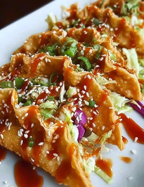 Crispy Chicken Wonton Tacos are a delightful twist on traditional tacos, bringing together crispy textures and savory flavors. They’re quick to make and full of fresh ingredients, making them a great option for busy weeknights. The combination of marinated chicken, crunchy coleslaw, and golden wonton wrappers is sure to be a hit with both kids and adults alike.