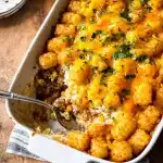 In the Midwest, they don’t call it a casserole—they call it a Tater Tot Hotdish, and it’s the ultimate comfort food. This simple, satisfying dish is built on layers: savory ground beef, a creamy sauce packed with vegetables, melted cheddar cheese, and a crunchy crown of golden tater tots. It’s a complete, budget-friendly meal that comes together quickly and is guaranteed to be a hit with every member of the family.