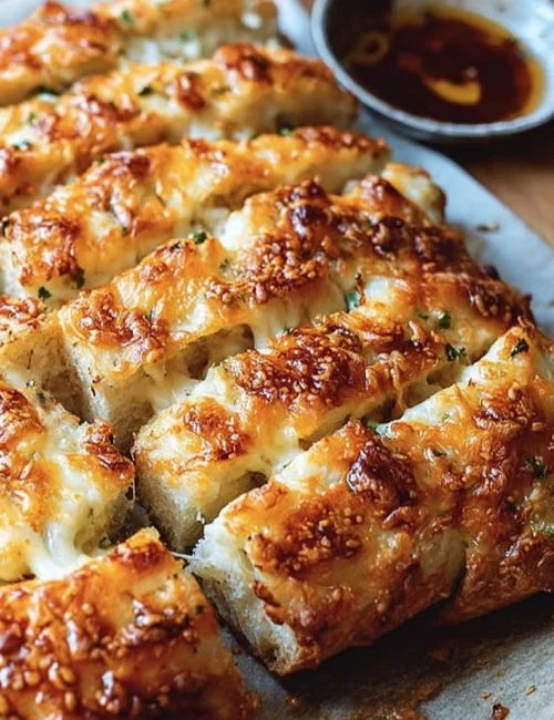 This cheesy bread pairs well with a variety of dishes. Enjoy it alongside a fresh salad or as a side to your favorite pasta. You can also serve it with marinara sauce for dipping, making it a fun snack for kids. It’s perfect for parties or casual dinners.