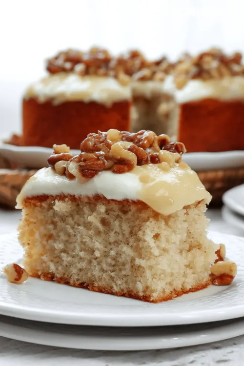 Serve cold straight from fridge for best texture and flavor. Cut into squares and pair with vanilla ice cream for extra indulgence. For fancy presentation, add light dusting of cinnamon sugar on each plate before placing cake slice.