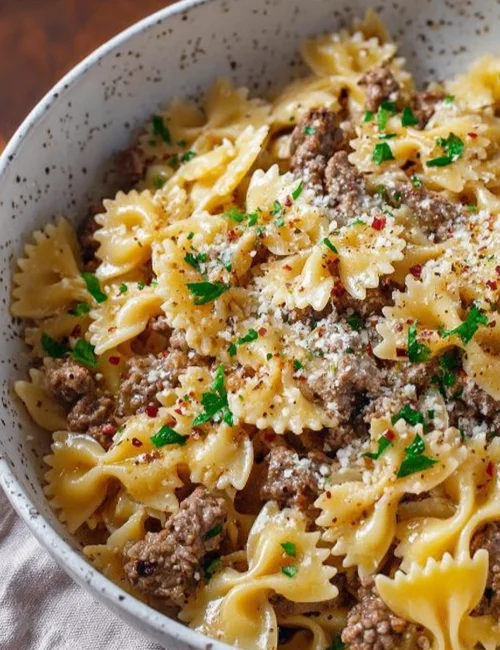 Garlic Butter Bowtie Pasta with Beef is a delightful dish that combines rich flavors with comforting textures. The bowtie pasta perfectly hugs the tender ground beef, all enveloped in a creamy garlic butter sauce. This meal is quick to prepare, making it ideal for busy weeknights or a cozy family gathering. Plus, it’s a crowd-pleaser that even picky eaters will love!