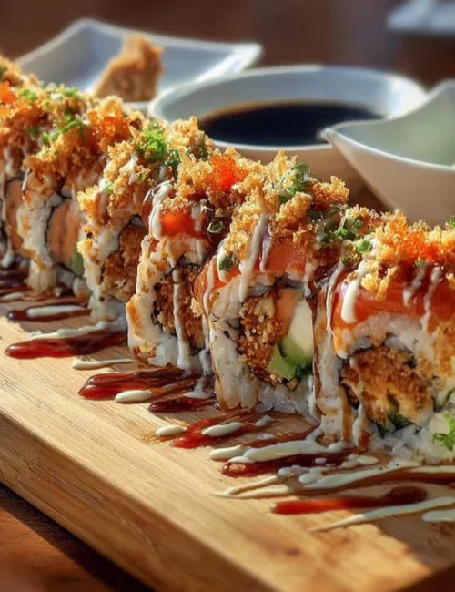 This sushi is not only tasty but also super easy to whip up at home. You can customize the ingredients to suit your family’s preferences, and it requires minimal prep. The crunchy topping gives each bite a delightful crunch, making it a hit with both kids and adults alike.