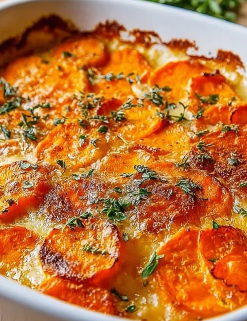 Making this delightful bake is easier than it sounds. You will slice the sweet potatoes thinly and layer them in a baking dish. Then, a lovely garlic butter sauce is prepared to pour over the layers. Finally, bake until it’s bubbling and golden. It’s a straightforward process that yields a fantastic dish!