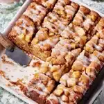 Imagine the warm, cinnamon-sugar crust and soft, tender apple filling of a fried apple fritter, but baked into a simple, moist sheet cake. That’s the magic of this ultimate Honeycrisp apple fritter cake! This is the perfect autumn treat, featuring a tender, spiced cake base loaded with buttery, cooked apples and topped with a sweet vanilla glaze that melts right into every crevice, forming a thin, sugary crust.
