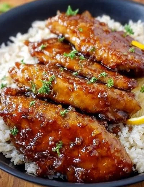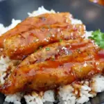 - Serve over rice and drizzle with remaining glaze. Garnish with chopped green onions if desired.