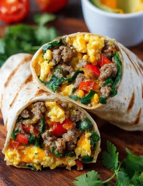 Making these burritos involves simple steps that anyone can follow. You start by cooking the sausage, whisking the eggs, and adding in fresh vegetables. Then, everything is baked on a sheet pan for easy serving. The best part? You can customize them to fit your family’s taste!