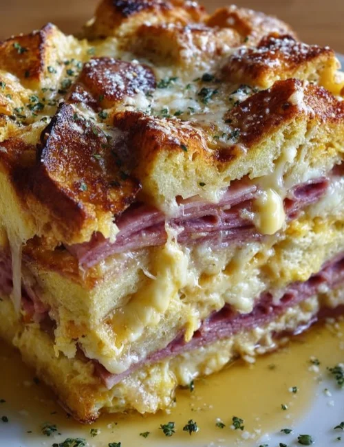 This Monte Cristo breakfast casserole is a delicious way to start your day. It’s filled with layers of ham, turkey, and creamy Swiss cheese, all soaked in a rich egg mixture. Perfect for brunch or a cozy breakfast with family, this dish is easy to prepare and sure to please everyone at the table.