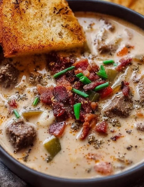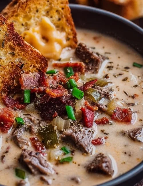 This cozy One-Pot Philly Cheesesteak Soup with Bacon is like a warm hug in a bowl. It’s rich and creamy, with tender bits of beef and flavorful veggies. Perfect for chilly nights, this soup is easy to make and even easier to enjoy. Your family will love the combination of cheesy toast that gives a satisfying crunch with every spoonful.