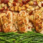 This Parmesan crusted chicken sheet pan dinner is a delightful way to bring the family together. It’s simple and quick, making it perfect for busy weeknights. With juicy chicken, tender potatoes, and fresh green beans, this meal is full of flavor and comfort. Your family will love the crispy, cheesy topping!