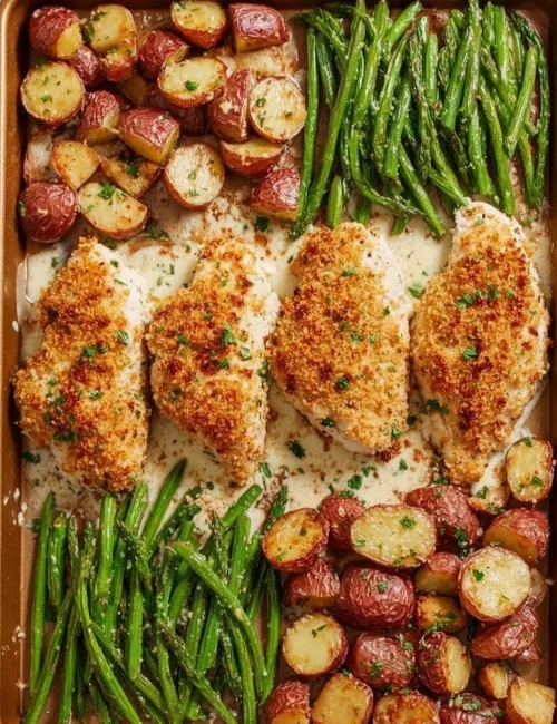 Parmesan Crusted Chicken Sheet Pan Dinner