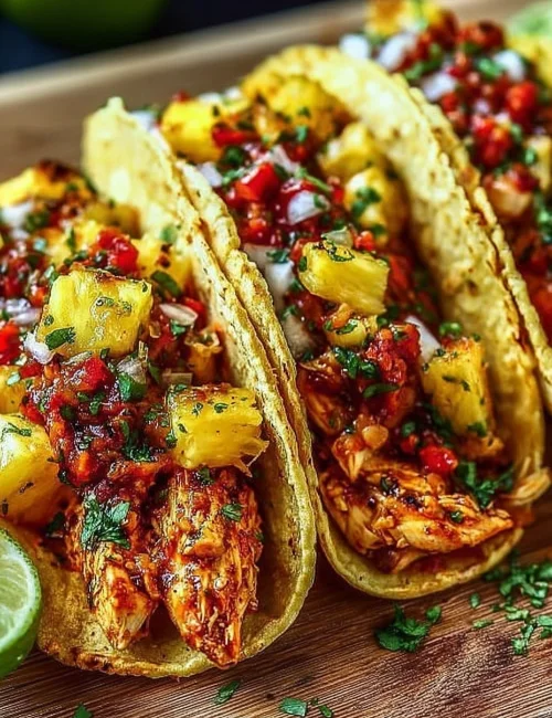 Pineapple chicken tacos are a delightful and refreshing meal that’s perfect for weeknights or casual gatherings. The tender chicken paired with sweet, juicy pineapple creates a wonderful harmony of flavors. These colorful tacos are easy to assemble and sure to please everyone at the table, making them a great choice for family dinners.