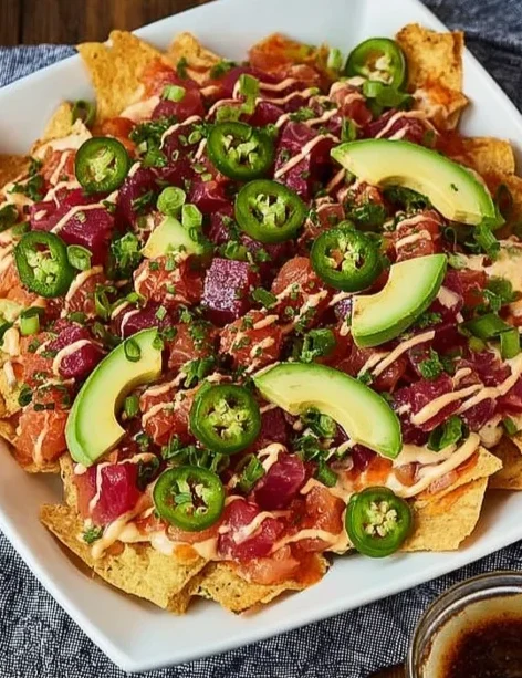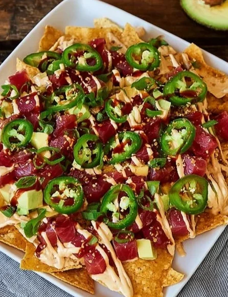 Poke nachos are best enjoyed fresh and crispy. They make for a great appetizer for parties or a fun family meal. Serve them with a side of extra spicy mayo for dipping, or pair them with a refreshing salad for a light dinner. They also go wonderfully with a cold drink!