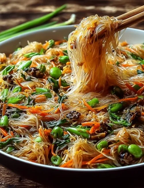 Rice noodle stir-fry is a quick and delicious dish that is perfect for busy weeknights. It’s colorful, fresh, and full of vibrant vegetables. Plus, the soft, chewy noodles mix beautifully with your choice of protein, making it a favorite for families.