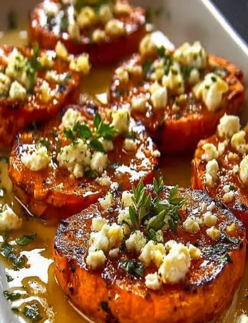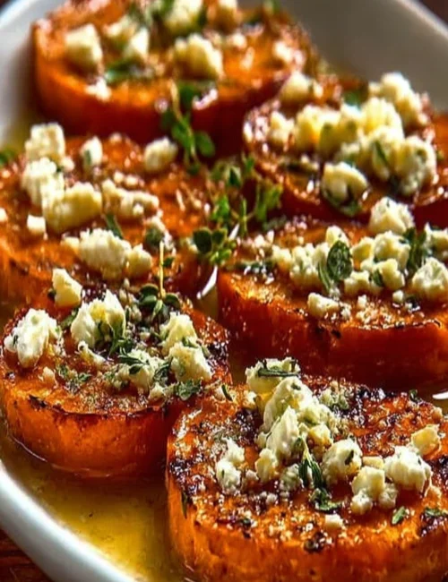 These Roasted Sweet Potato Rounds are a delightful mix of tender and slightly crispy sweet potatoes, drizzled with honey and topped with creamy feta, perfect for any occasion.