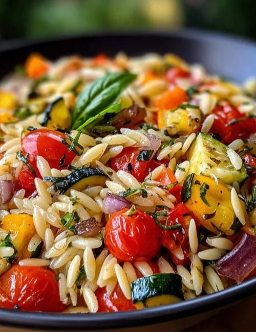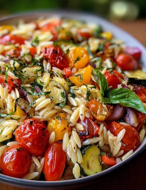 This roasted vegetable orzo is the perfect blend of cozy and nutritious. It’s easy to make and bursting with flavor. This dish is great for busy weeknights or as a fun side for family gatherings. Each bite is filled with sweet, tender veggies and the comforting texture of orzo pasta.