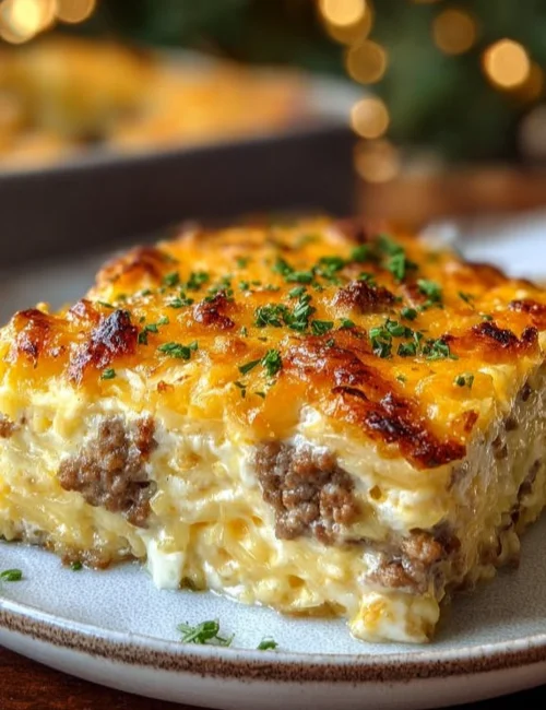 Making this casserole is straightforward. You start by cooking the sausage and mixing in cream cheese. Then, you’ll whisk together the eggs with a few spices and layer everything in a baking dish. It’s perfect for beginners, as there’s no complicated technique involved. Just mix, layer, and bake!