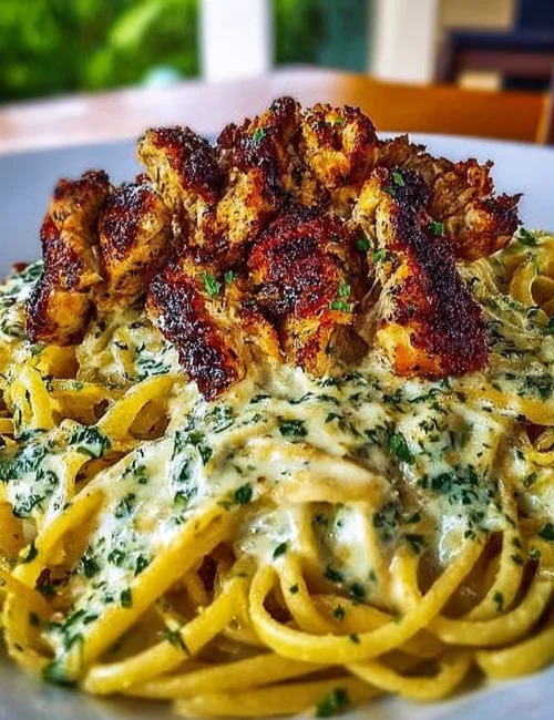 Savory Cajun Chicken and Creamy Garlic Parmesan Linguine is a delightful dish that brings warmth and comfort to any family dinner. The Cajun-seasoned chicken complements the rich, creamy sauce perfectly, making it a lovely option for cozy nights at home. This recipe is simple to prepare and uses everyday ingredients, making it great for busy weeknights or special occasions. It’s sure to please both kids and adults alike.
