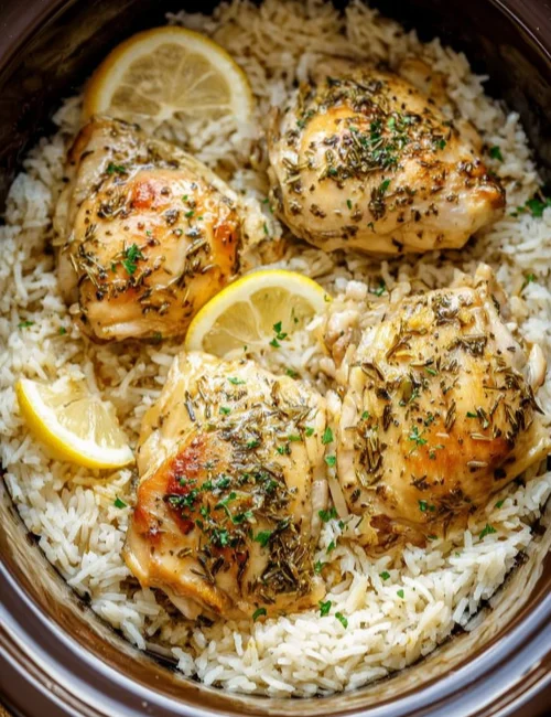 Slow Cooker Lemon Herb Chicken with Fluffy Rice