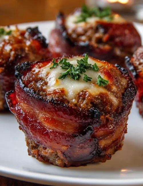 Smoky Bourbon BBQ Bacon Wrapped Meatloaf Cupcakes are a fun and cozy twist on a classic dish. They blend the rich flavors of beef and smoky bacon, topped with a sweet and tangy bourbon BBQ glaze. Perfect for a family dinner, these meatloaf cupcakes are a hit with kids and adults alike. Serve them any night of the week for a hearty, satisfying meal.