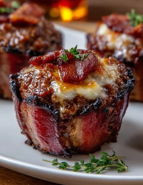 Smoky Bourbon BBQ Bacon Wrapped Meatloaf Cupcakes are a fun and cozy twist on a classic dish. They blend the rich flavors of beef and smoky bacon, topped with a sweet and tangy bourbon BBQ glaze. Perfect for a family dinner, these meatloaf cupcakes are a hit with kids and adults alike. Serve them any night of the week for a hearty, satisfying meal.