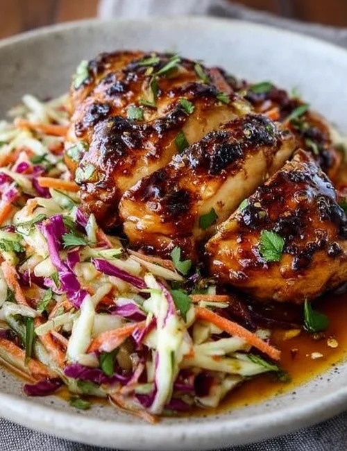 Sticky Apple Cider Chicken with Crisp Autumn Slaw