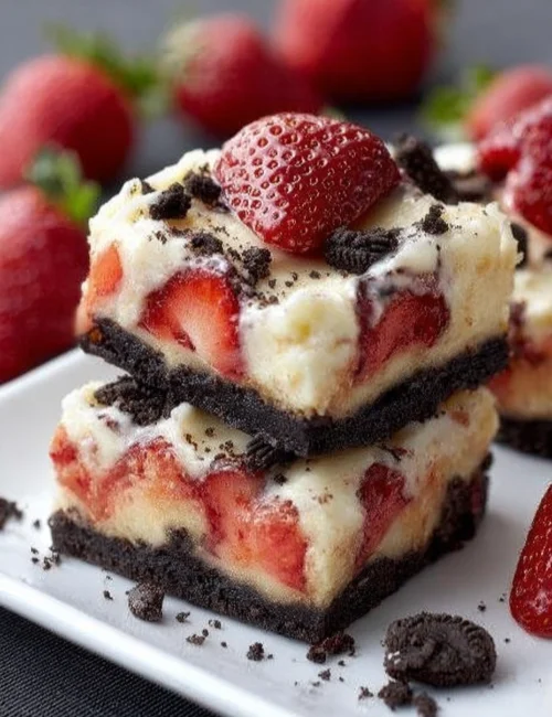 Making these bars is straightforward and beginner-friendly. You’ll start by creating a delicious Oreo crust followed by a creamy cheesecake filling mixed with fresh strawberries. Just a few steps and some time in the oven, and you’ll have a delightful dessert ready to chill!