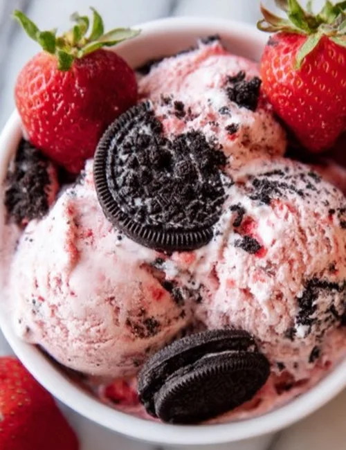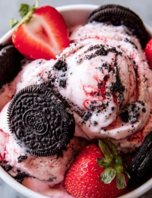 - Scoop and serve, enjoying the blend of strawberry and Oreo flavors!