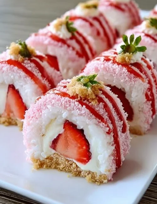 Strawberry Shortcake Cheesecake Dessert Sushi Rolls