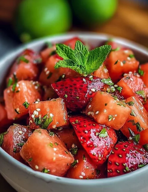 This Strawberry Watermelon Salad is a bright and refreshing dish that’s perfect for warm days. It’s sweet, juicy, and a little bit tangy from the lime and honey. Plus, it’s super easy to make, so it’s great for busy families looking for a quick side or a light meal. Enjoy it at picnics, barbecues, or even as a light dessert!