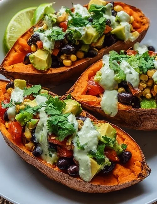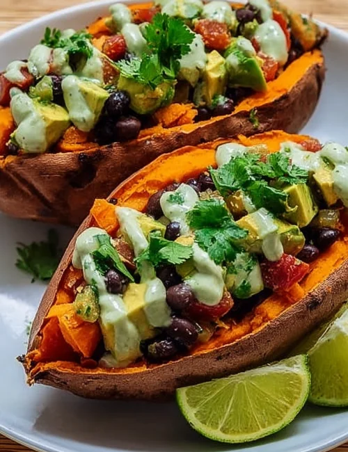 Stuffed sweet potatoes topped with creamy avocado, hearty black beans, and zesty cilantro lime crema are a true delight. They’re simple to make, filling, and packed with flavors that everyone in the family can enjoy. Whether you’re looking for a quick weeknight meal or a cozy weekend dish, this recipe hits the spot!