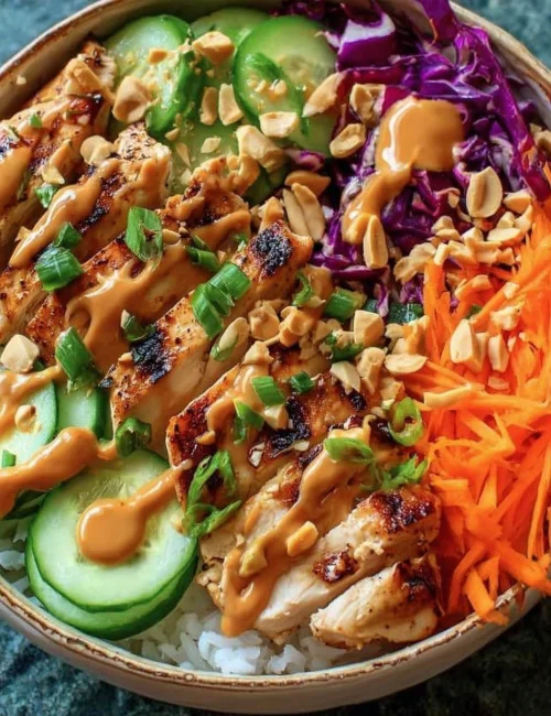 This Thai Peanut Chicken Buddha Bowl is a delightful mix of flavors and textures. It’s creamy from the peanut sauce, fresh from the veggies, and tender from the chicken. Perfect for a family dinner or meal prep, this dish is simple and quick to whip up. Your loved ones will enjoy customizing their bowls just the way they like!
