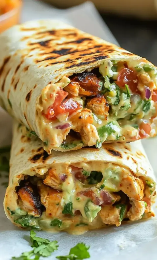 A delightful and flavorful burrito filled with grilled chicken, fresh vegetables, and chipotle ranch dressing, perfect for family dinners and gatherings.